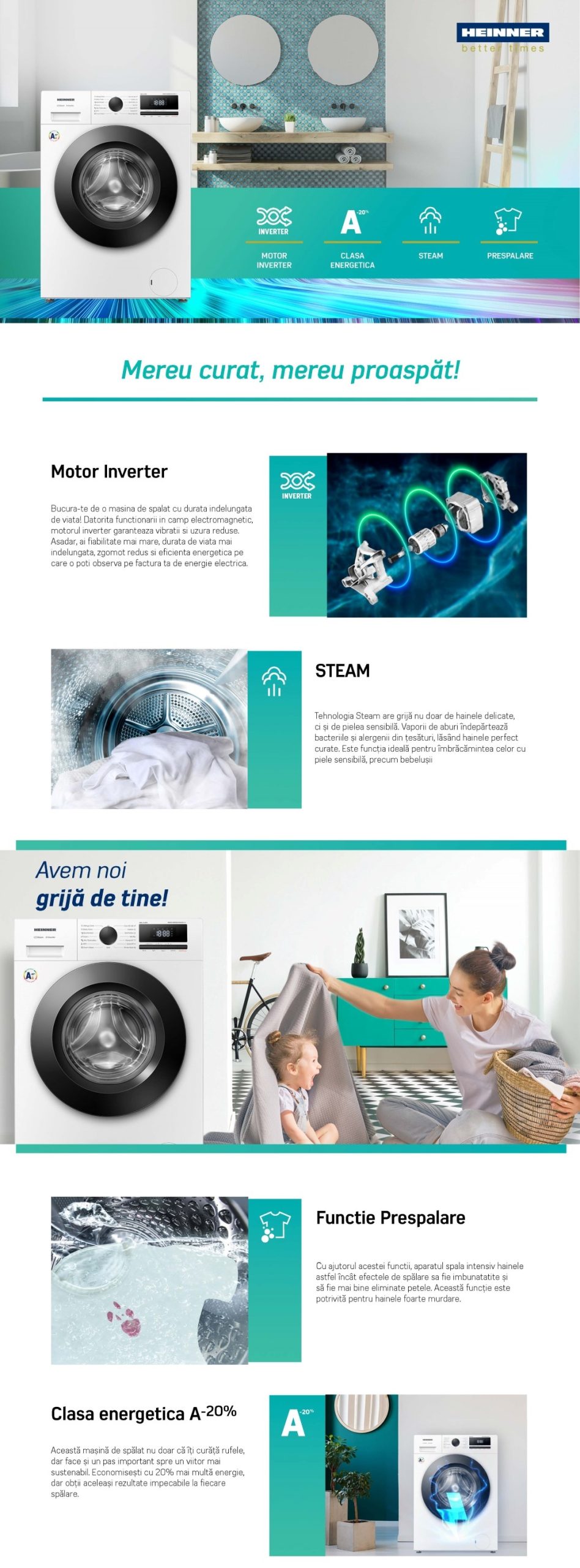 Programe spalare Bumbac Sintetice Clatire si centrifugare Centrifugare Baby Care Mix Allergy Care Program rapid 15 min Delicate/Matase Sports Eco 40-60 Program 20 grade Down Power 49 minute