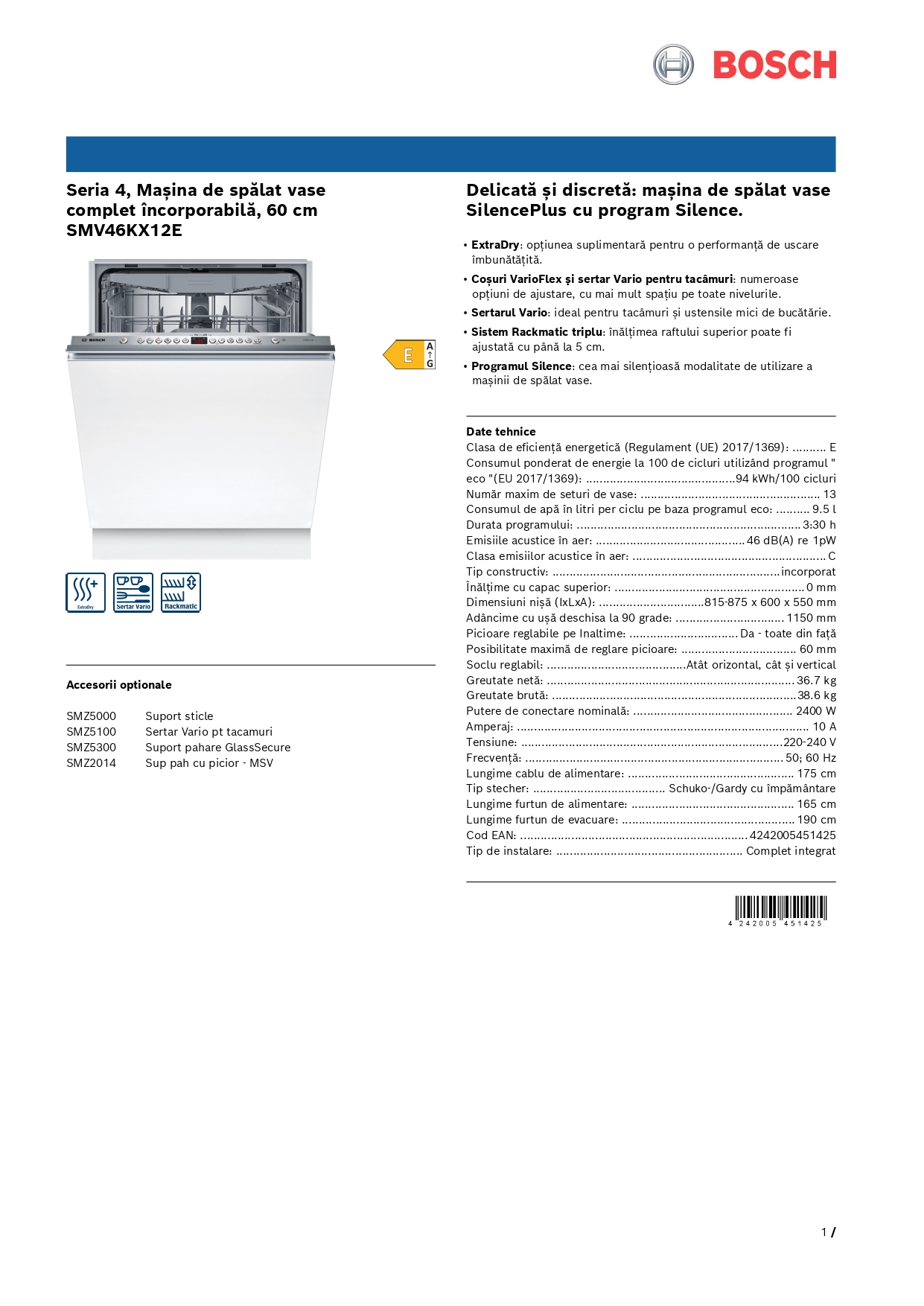 Masina de spalat vase incorporabila Bosch SMV46KX12E