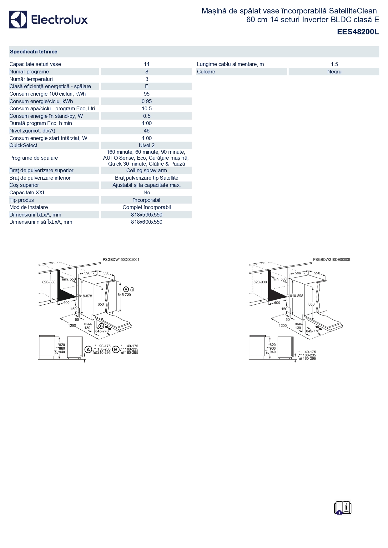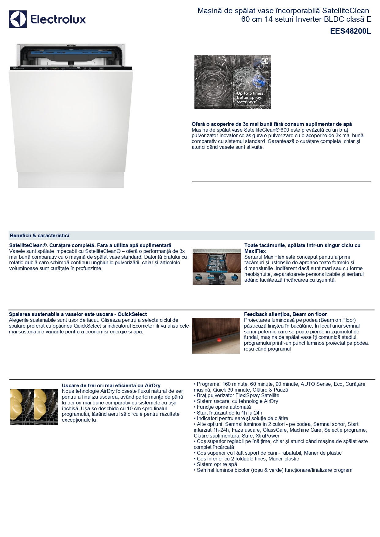 SKU: EES48200L Categorii: Electrocasnice mari, Masini de spalat vase