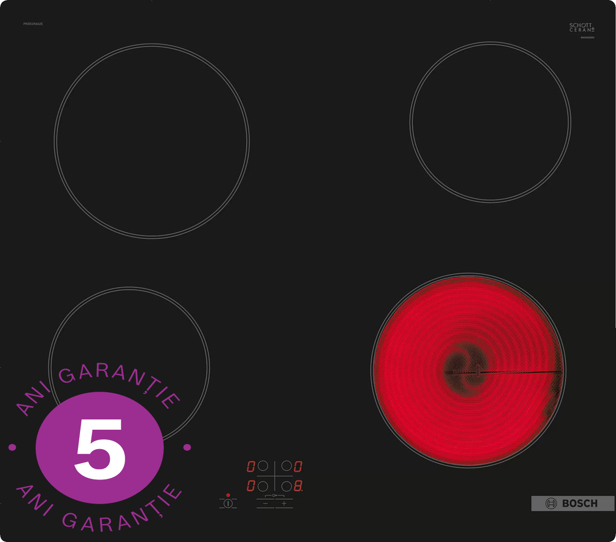 Plită electrică radiantă, 60 cm, suprafață pentru 4 vase de gătit.