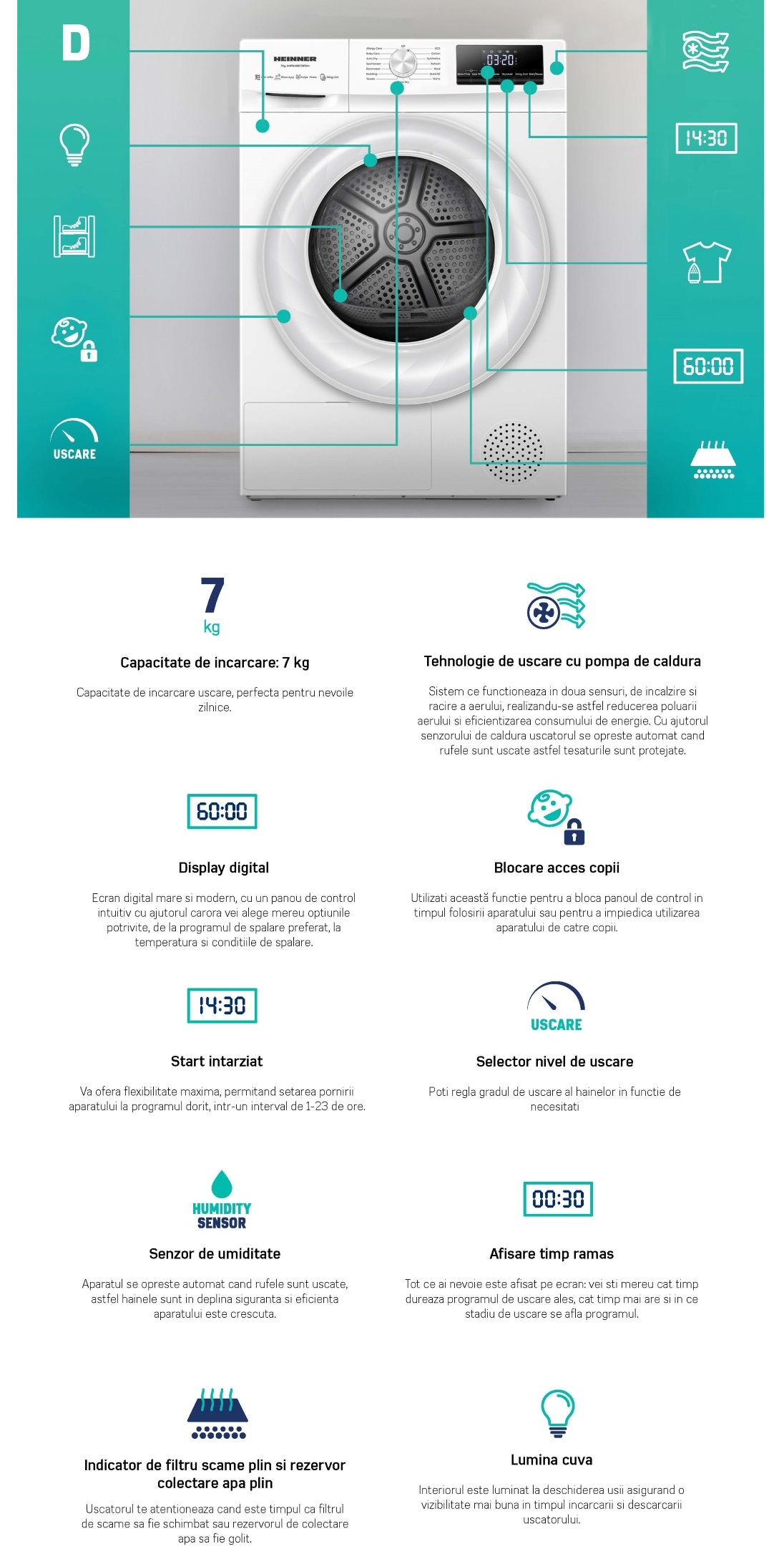 Capacitate uscator | 7 Kg |