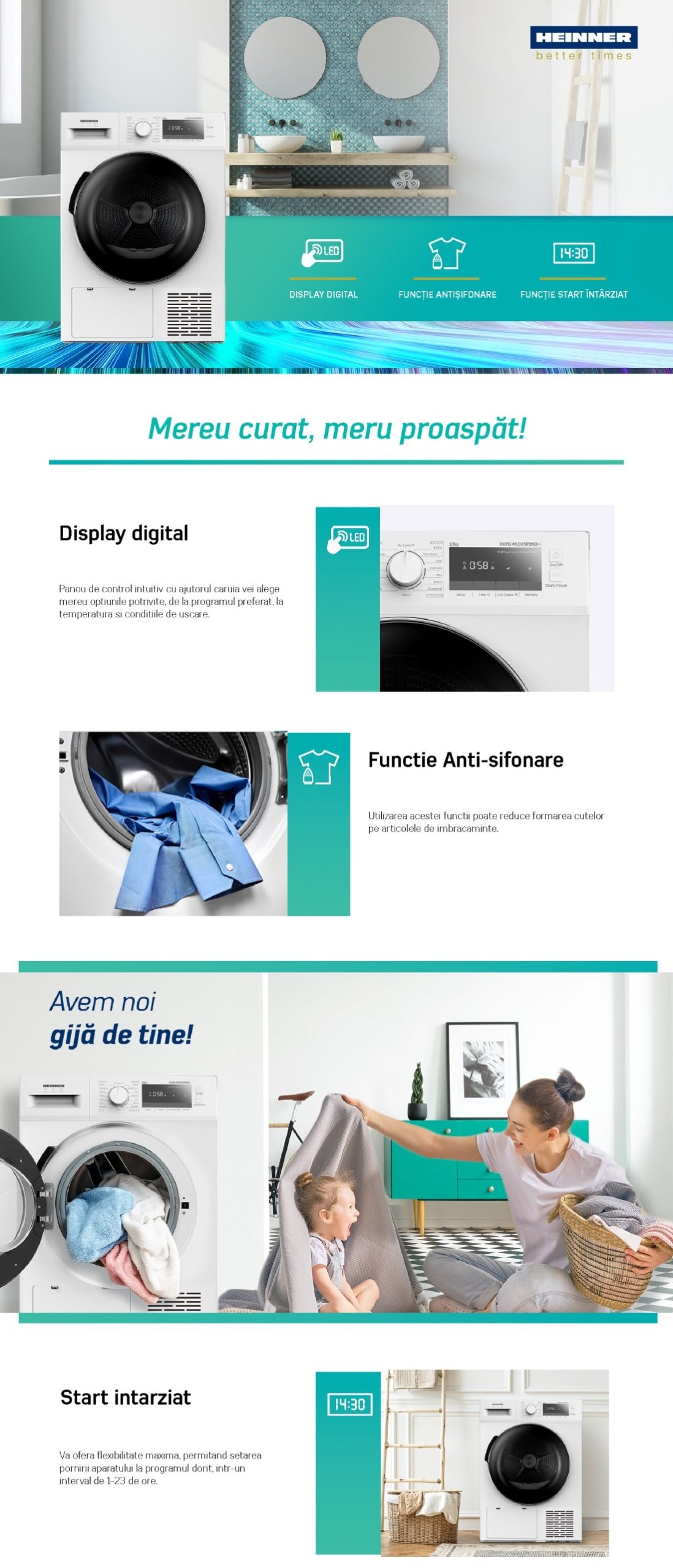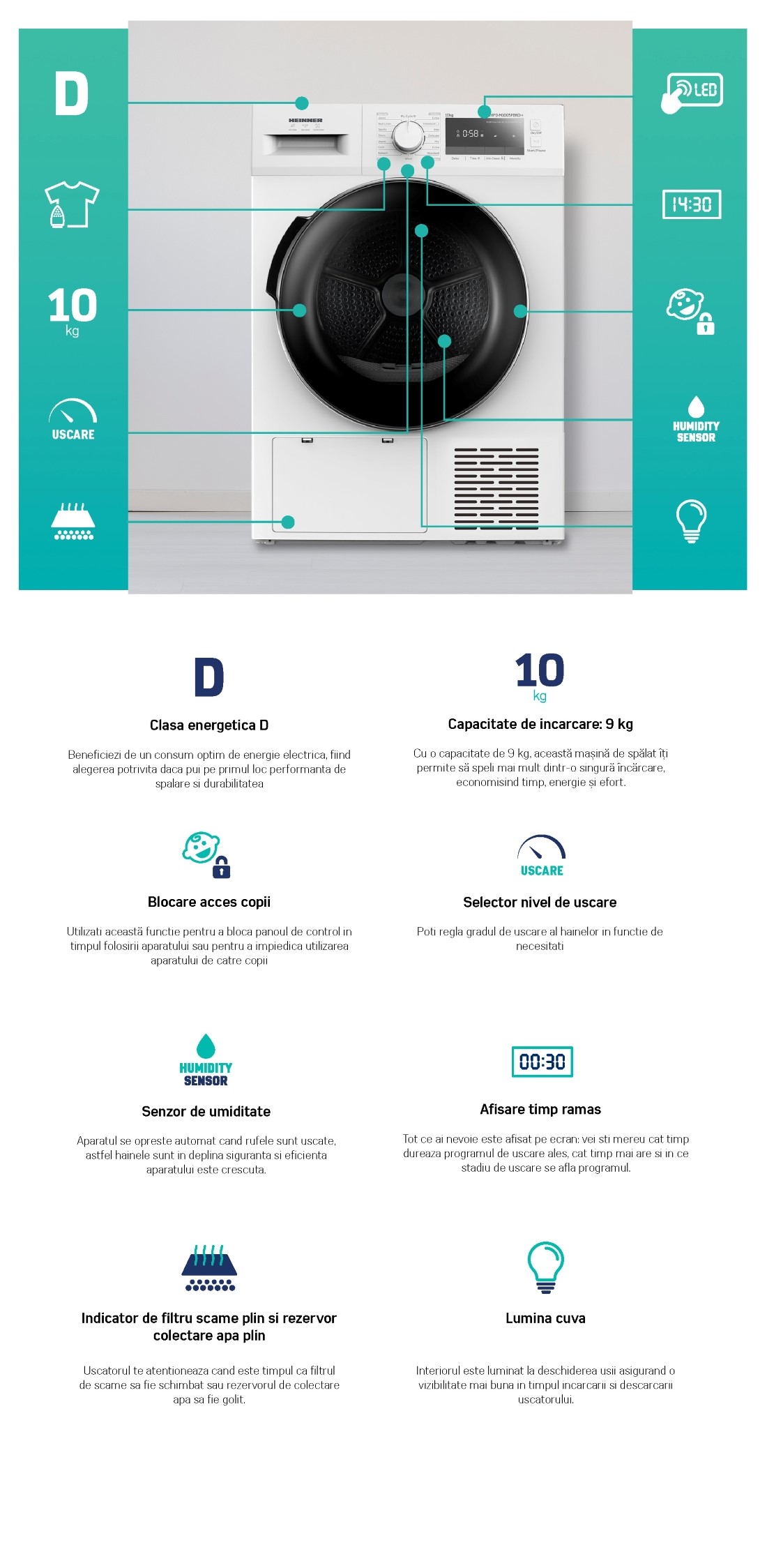 SKU: HHPD-M10G5PBKD-2plus Categorii: Electrocasnice mari, Masini de spalat si uscatoare de rufe, Uscatoare rufe