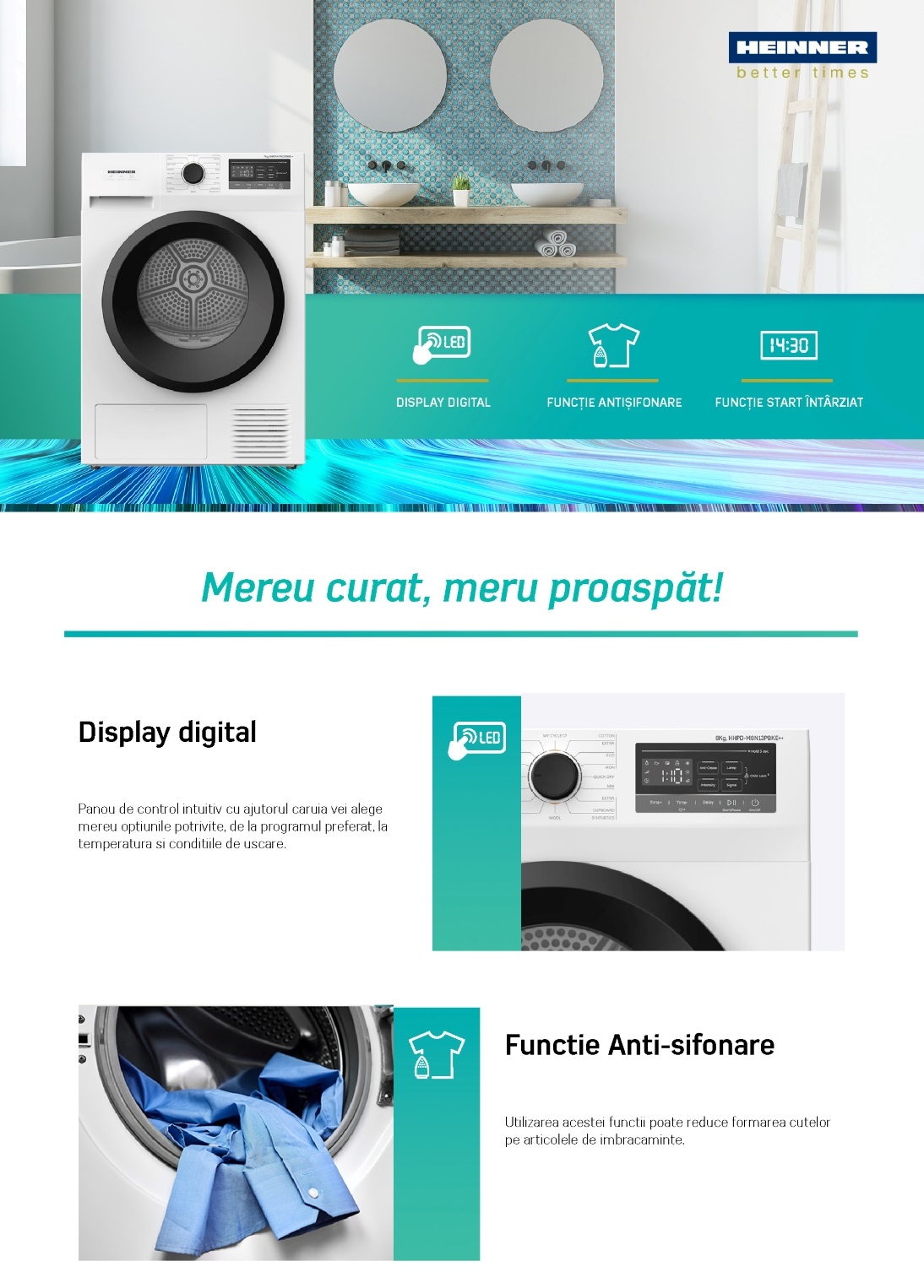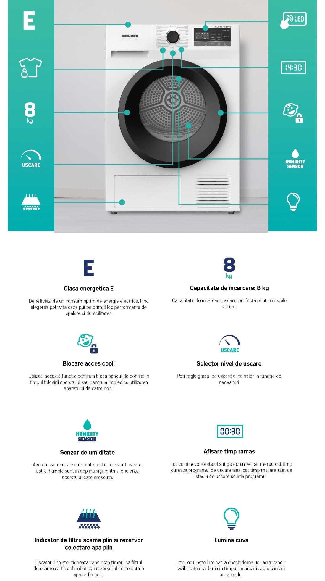 Categorii: Electrocasnice mari, Masini de spalat si uscatoare de rufe, Uscatoare rufe